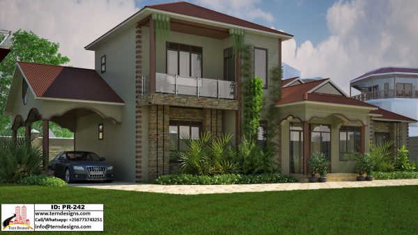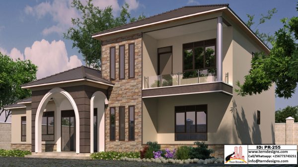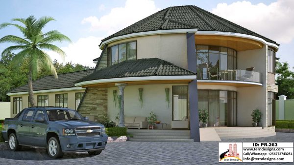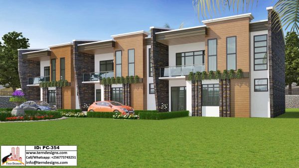 An executive mixed apartment block design with a 4-bedroom house and 1-bedroom storeyed units (6-units total).