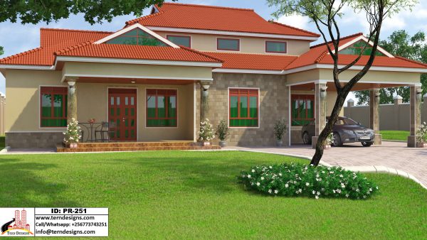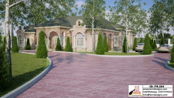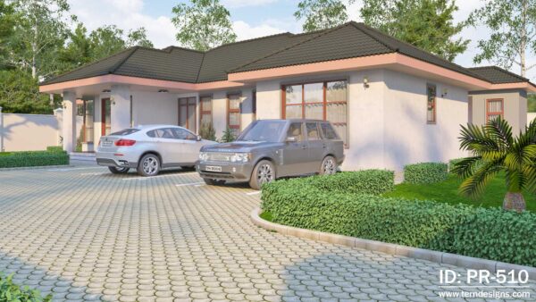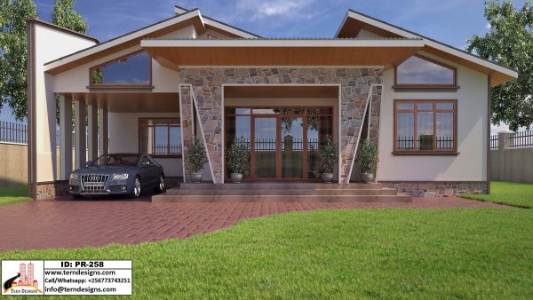 A 4-bedroom spacious and open plan bungalow. It has a unique eave-celling flashing design.