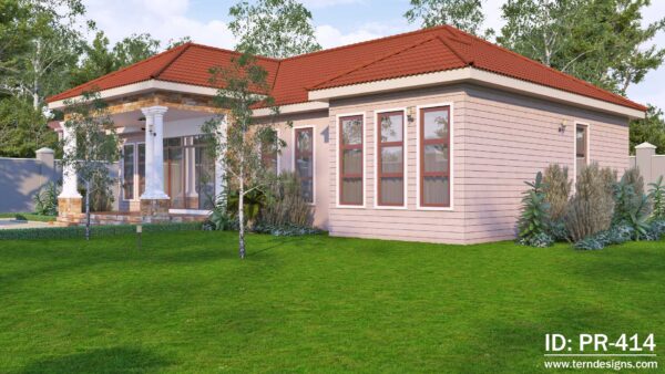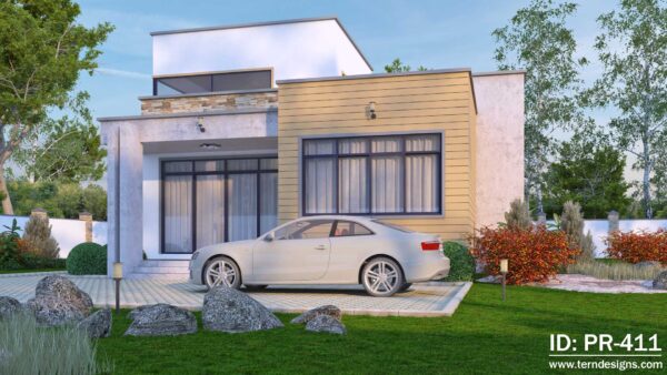 A contemporary 2-bedroom house design which not only save on space but also on roofing costs. It has a prayer room as an additional