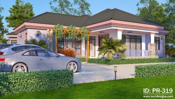 A modern 4-bedroom modern bungalow with a hidden roof, spacious rooms and open floor plan