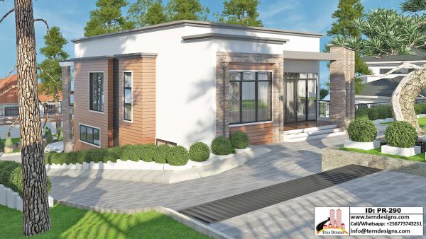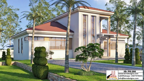 A four-bedroom contemporary house design suitable for slopping plots of land. It’s a spacious well designed house with access on both ground floor and first floor.