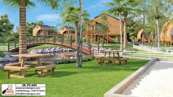 An Eco-friendly design we did as part of the Redevelopment of Fusion Auto Spa, Munyonyo. It includes self-contained wooden cottages, swimming pool, kids play area, garden bar, well planned parking space, party lawn, landscaping and drainage design, etc