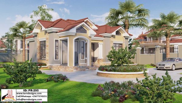 A 5-bedroom house design suitable for small plots of land. It’s an open floor plan with well-planned spaces done to fit in your economical needs.