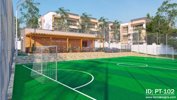 A 5-aside football pitch project seating on 25 decimals. It comprises of a minimal parking, bar and seating area, office and wash rooms